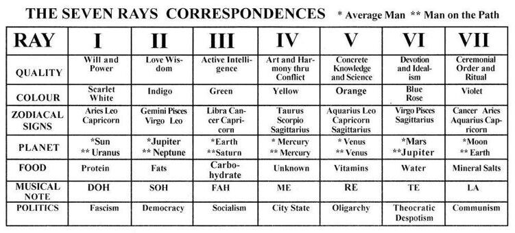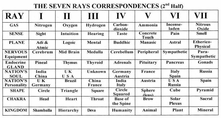 Khi một đất nước đã rất lâu đời, các định chế của nó tạo ra một ảnh hưởng mạnh mẽ lên dân cư của nó và hào quang của quốc gia đó có thể tác động đến các quốc gia khác. Cũng như phàm ngã con người có những phẩm tính riêng, một quốc gia cũng vậy, và chúng tương tự đến mức chúng ta có thể áp dụng một phân tích về Cung cho cả hai. Chúng ta nói về các phàm ngã con người có một thể trí, một thể cảm dục/cảm dục, và một thể xác, và chúng ta có thể dễ dàng khám phá Cung nào “cai quản” thể nào. Tác phẩm The Seven Rays—Key to the Mysteries của tôi giải thích rõ ràng những vấn đề này.
