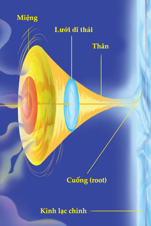 Hình 2b. Cấu trúc luân xa theo Choa Kok Sui – Hình được phụ đề tiếng Việt từ nguyên bản trong The Chakras and Their Functions