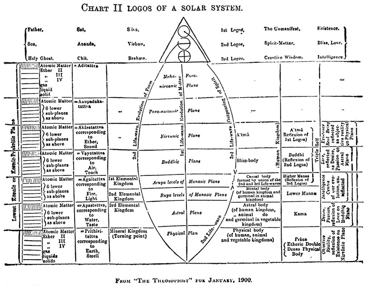 Quoting a chart from the article “Study on the Relation of Man to God”, in the Theosophist January, 1900 ↑